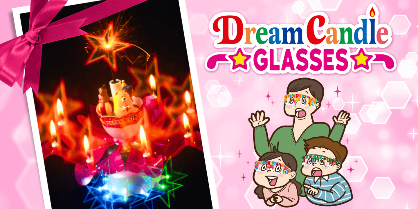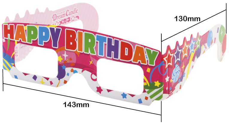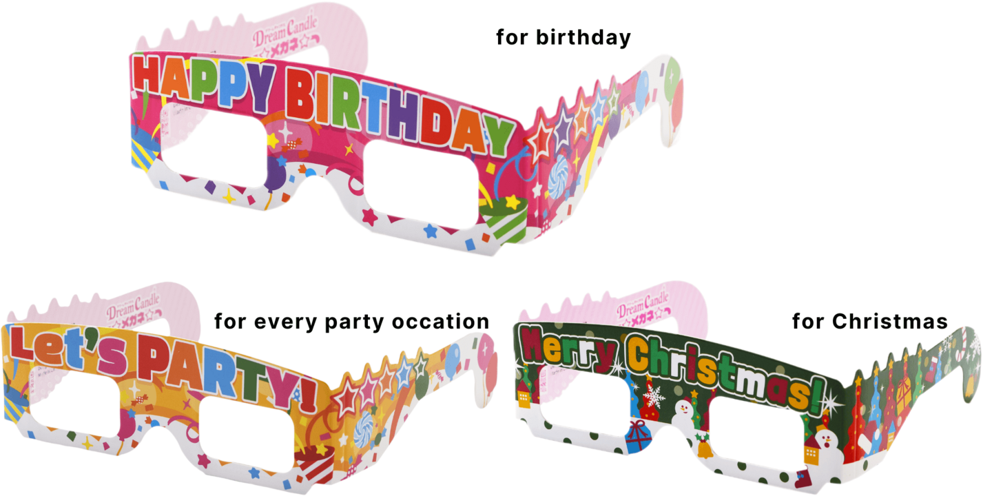Looking through those Special glasses, all the shining objects such as the sparkler, candle frames or LED lights are shown as the star-shapes. *Each Super DreamCandle contains 1 pair of DreamCandle glasses.