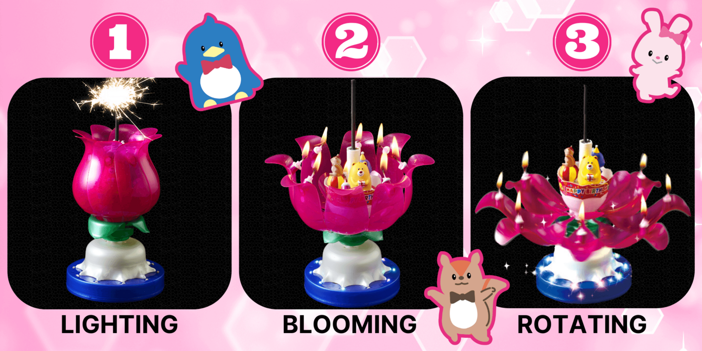 - Blooming: Petals bloom along with Birthday or Christmas music, and three collectible character figures appear.